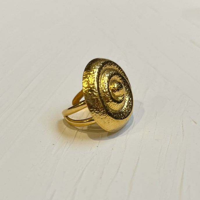 A timeless gold ring featuring a smooth, polished band and a radiant round stone. Its elegant simplicity makes it a perfect piece for any occasion.